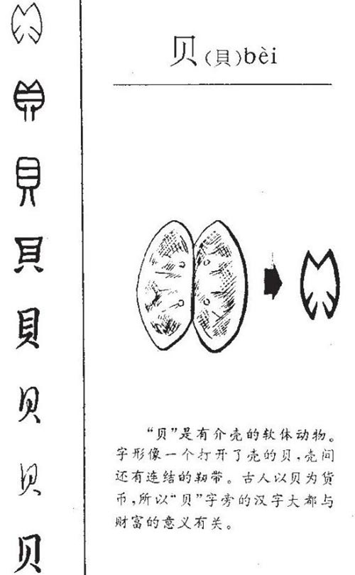 这就是“字源学习法”的意义,“贝”就是一个字源,因为曾是一种货币,所以有财物的意思,由“贝”构成的字,往往会跟财务有关。如果我们能够了解“有”也是一个字源,指的是拥有财物。那么,为什么说“有”的意思是拥有财物呢?因为“月”也是一个字源,除了是月亮的意思,还有“肉”的意思,上古时期,物质匮乏,还处在狩猎时期,能捕获猎物,获取肉食,是非常不容易的,所以肉自然也是非常珍贵的,用手去拿肉,自然也就是拥有财物的意思;用手把肉送给别人,自然有赠送财物的意思。这个意思,后来就被引申为用钱财收买的意思了。