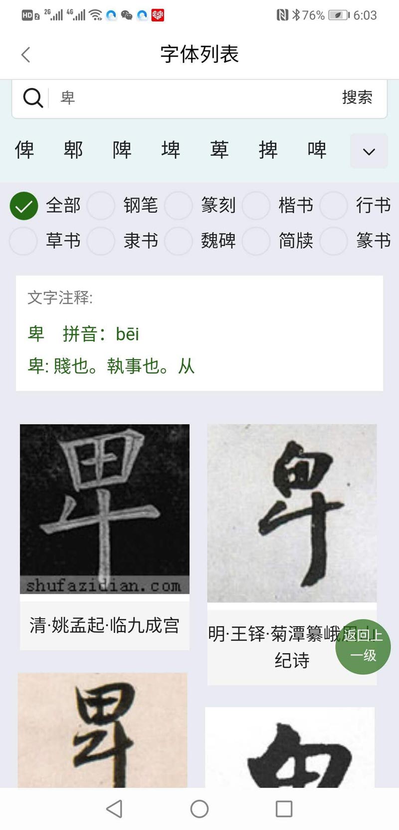 4.设有“返回键”,点击后可以返回该字的上级字根。