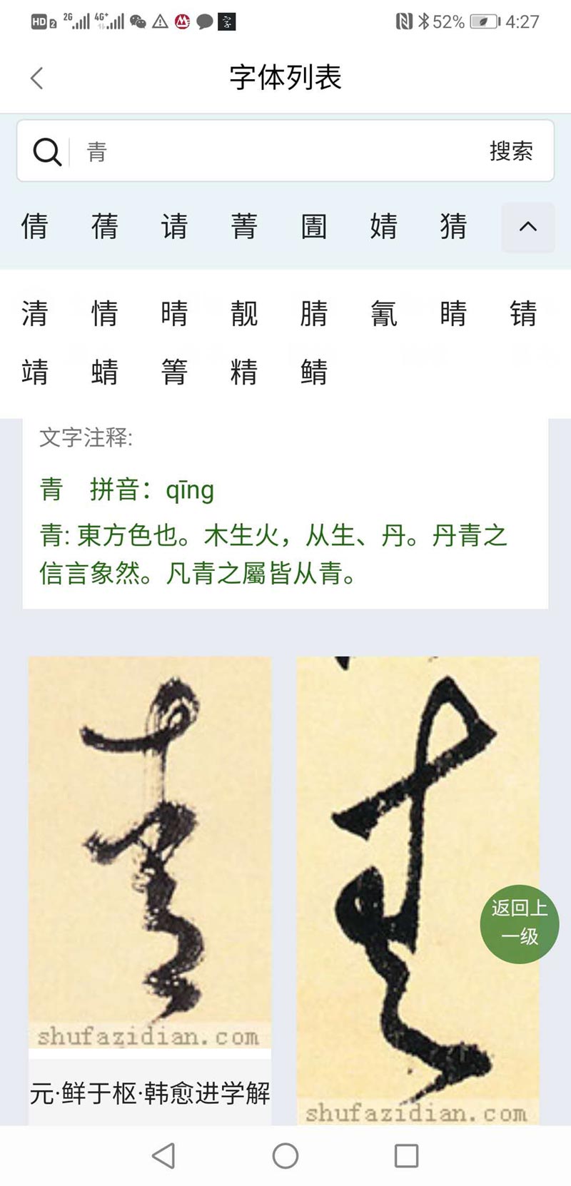 1.字根书法字典APP排序采用罗氏汉字字根排检输入法。收录历代名家各种书法字体(篆隶行草楷)矢量高清图片五十多万张。